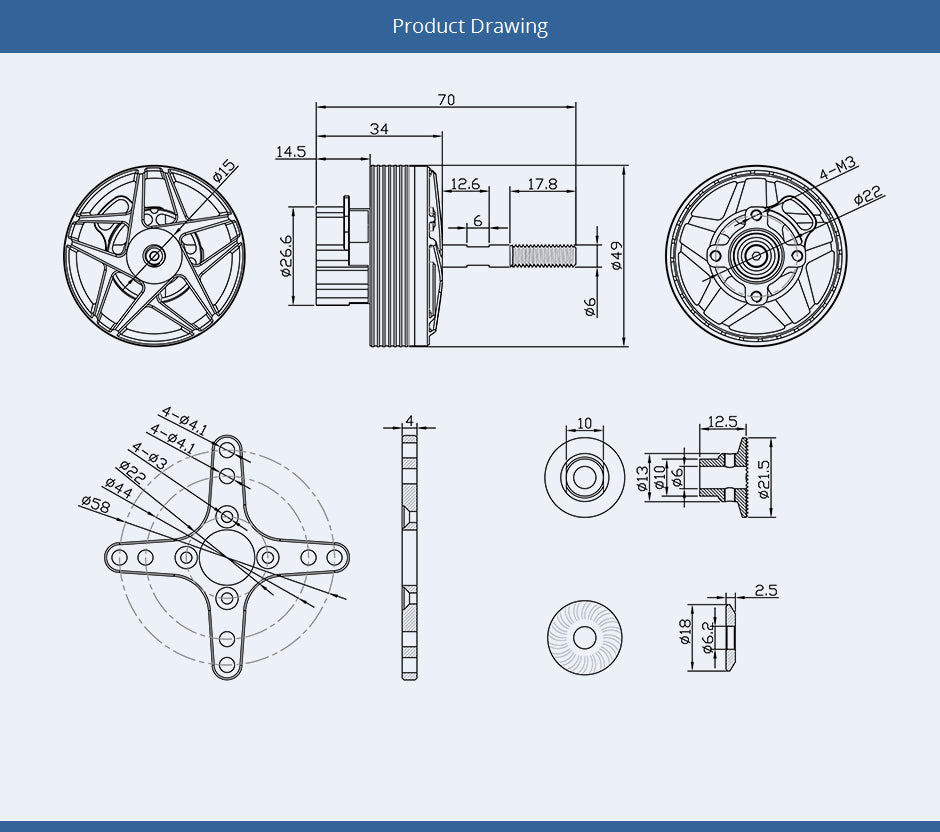 Az átmérő és a motor magasságának aránya 3:1, a nagyobb nyomaték és a jobb hűtés érdekében.