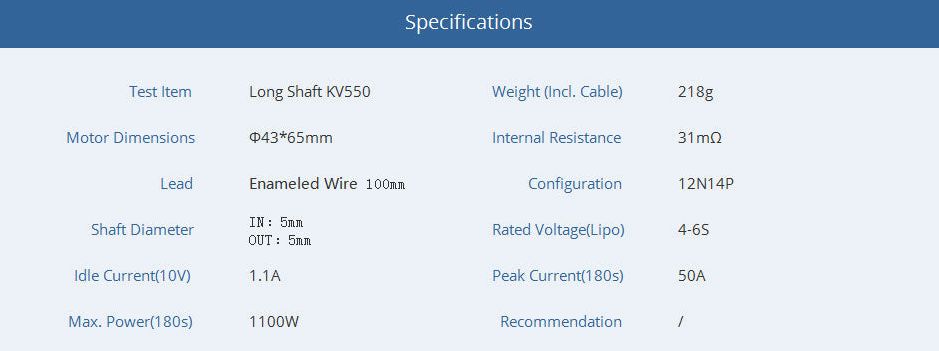 Kompatibilis légcsavarok: 6 cella / 13x6,5" - 14x7" propeller.
